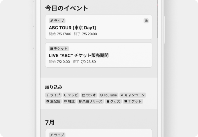 どこよりも早く、ライブやイベントのチケット先行受付(抽選)にエントリーが可能です。※チケット先行受付は、ご応募多数の場合、抽選となりますのでご了承ください。